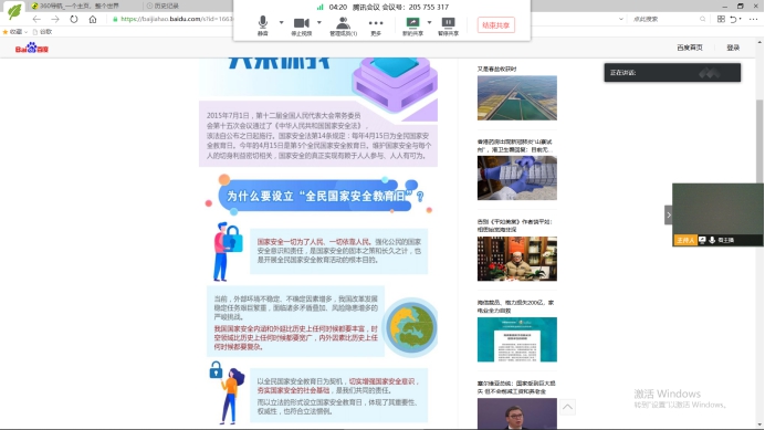 机械11704班黄锐:今天的公开课虽然只有一堂课,但内容很充实很紧凑,都是干货,学习到了很多。老师告诉我们,安全教育很重要,要坚持总体国家安全观,统筹传统安全和非传统安全。保障国家安全的前提是人民安全,从我做起做起,防范疫情期间不聚集,戴口罩。贯彻落实社会主义核心价值观,走可持续发展道路,与国家携手同行,共同战胜疫情,向奋斗在一线的人员致敬!