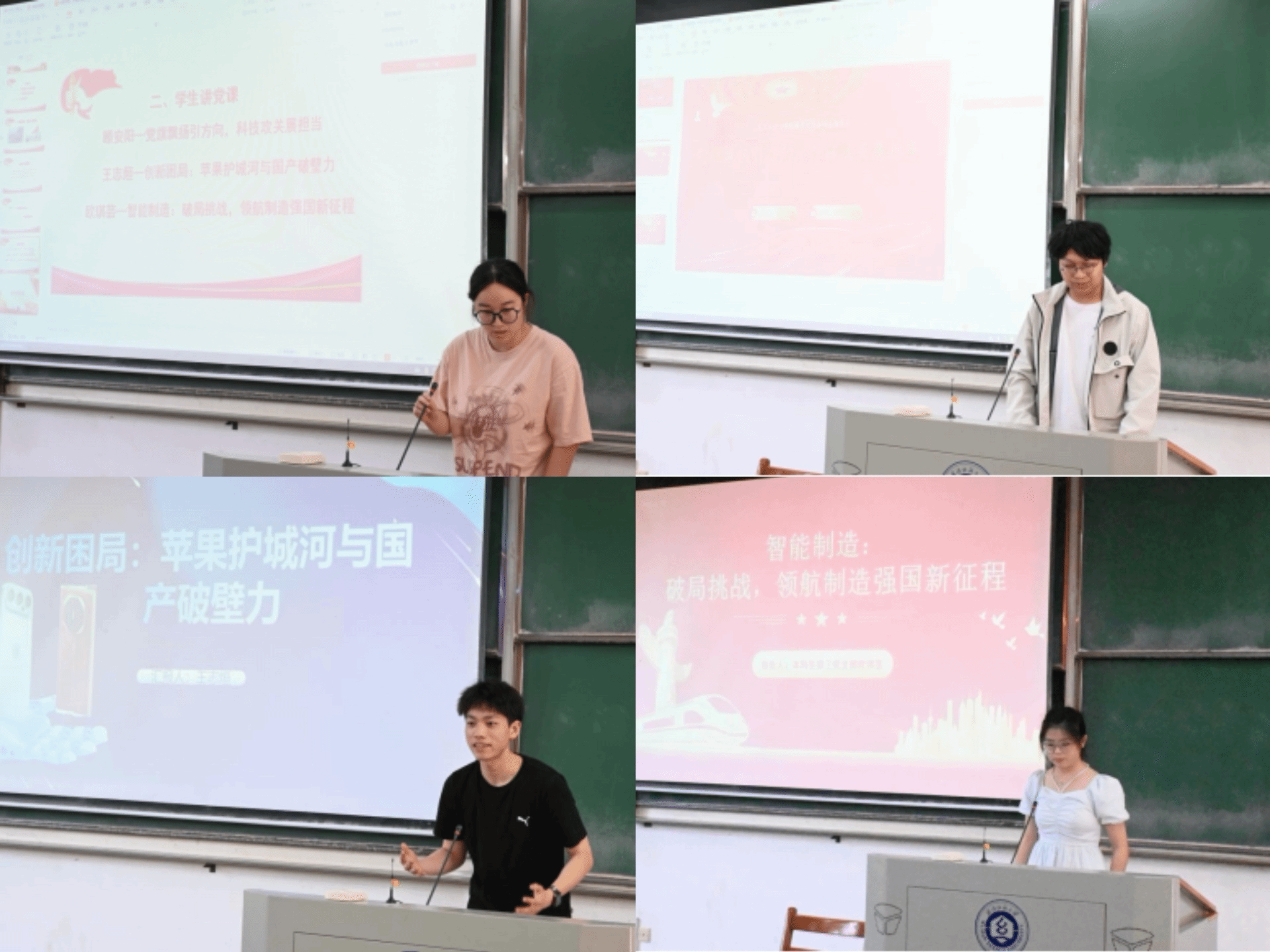 活动伊始,全体党员起立奏唱国歌。彭林娜同学带领大家重温入党誓词,坚定信仰和入党初心。随后,顾安阳同学以“党旗飘扬引方向,科技攻关展担当”为主题,结合具体事例说明在智能制造领域的发展中,党员勇挑科技攻关的重担,为实现制造强国梦贡献力量。王志烜同学围绕“创新困局:苹果护城河与国产破壁力”主题,从行业实际出发,剖析了我国智能制造产业面临的挑战与机遇。通过对比苹果公司的技术优势与创新模式,探讨了企业如何突破技术壁垒、实现创新突破,并引发了与会人员的热烈讨论。欧琪芸同学分享了“智能制造:破局挑战,领航制造强国新征程”,阐述了智能制造在推动我国制造业转型升级中的关键作用,为大家指明了前进的方向。