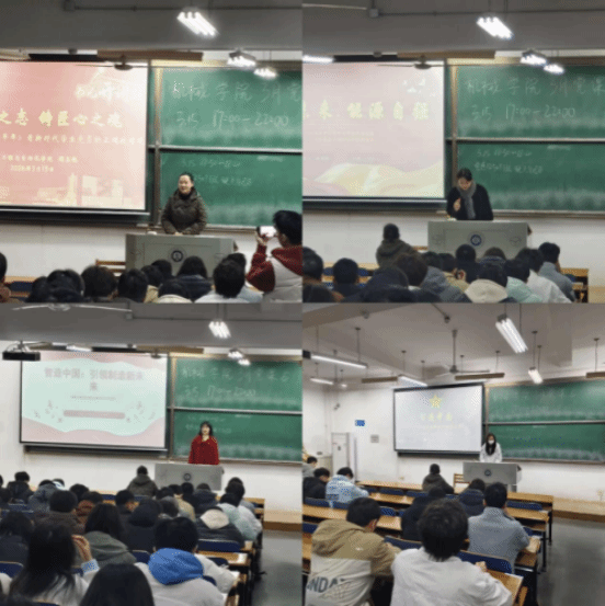随后,三位学生党员结合智能制造专业特色,带来了一场一场精彩纷呈的微党课。卢泳颖同志以《智造中国—从春晚看新时代制造力量》为题,透过春晚舞台上惊艳世界的机器人表演和全息投影技术,生动剖析了中国智造背后的硬核科技力量,展现了大国制造的自信与风采。蒋潇雨同志聚焦国际局势,作了《智造未来,能源自强》的发言。她结合近期美伊以冲突引发的全球油价波动,深入浅出地分析了中国智能制造在提升能源利用效率、开发新能源装备方面的关键作用。聂成欣同志围绕《智造中国—引领制造新未来》进行分享,她立足行业前沿,详细梳理了我国智能制造的发展现状与技术瓶颈,并展望未来趋势,号召全体党员投身技术攻关,做新时代制造强国的建设者。