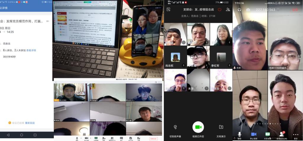 其中,工训支部通过“腾讯会议APP”举行了主题党日活动。总结了工训支部以及工程实训中心前期参加抗疫工作的情况,支部两次共有6人、11人次参加学校隔离点的清理工作,并带动中心2名非党员老师也参加了清理工作,另有1人参加小区的防疫值班。“英雄的工训”在抗疫中总体表现积极主动,召之能战,大家纷纷表示时刻准备听从学校抗疫工作需要,参加进一步清理隔离点的工作;积极响应党中央号召,捐款抗疫;停课不停教,钻研业务,开发“智慧工程训练APP”;结合科技抗疫,建设《口罩智能制造》的实训项目。