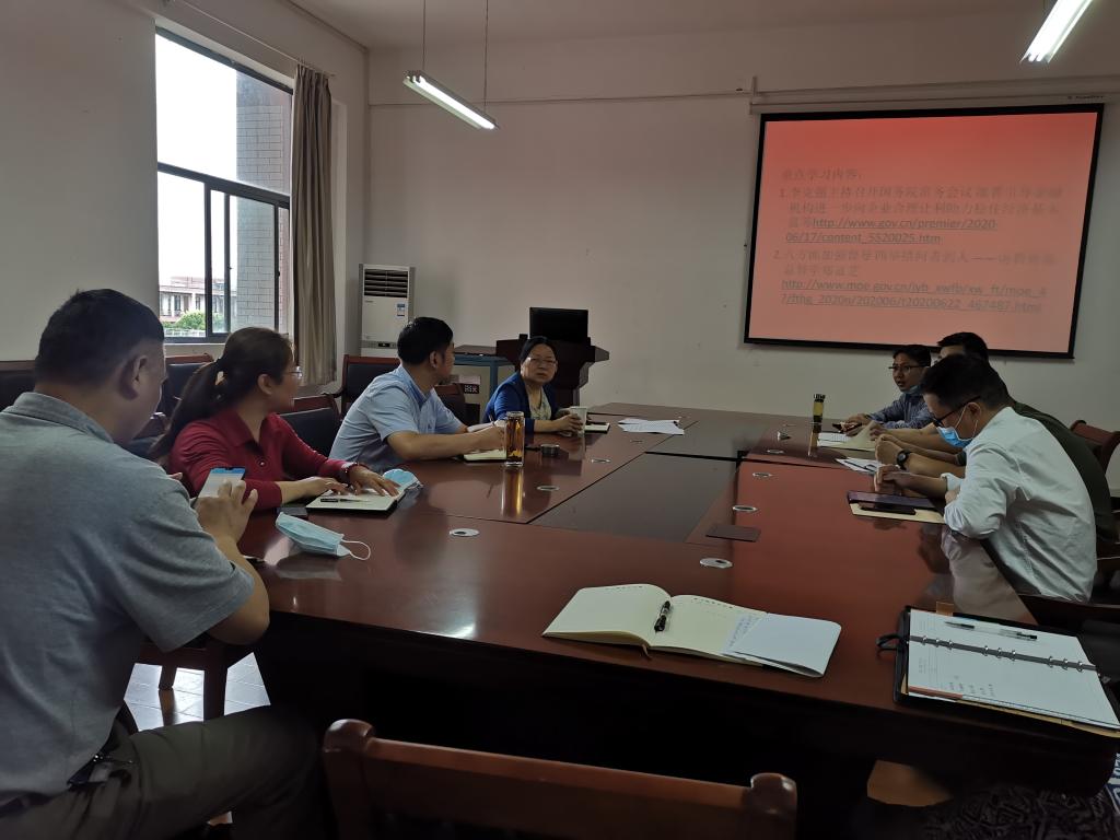会上大家认真学习了学校安排的有关内容,并重点学习了《李克强主持召开国务院常务会议 部署引导金融机构进一步向企业合理让利助力稳住经济基本盘等》、《八方面加强督导 四举措问责到人 ——访教育部总督学郑富芝》。大家认为“两会”的顺利召开进一步坚定了全部疫情防控总体势头向好的趋势没变,尽管北京局部地区存在确诊病例和部分中高风险仍未解除,但政府应对有力有序,市民积极配合,都为我们湖北高校毕业生返校创造了必要的信心。目前学院各项防身措施严格落实学校有关要求,我们有信心取得最后的胜利。会上对两会有关内容进行了学习。