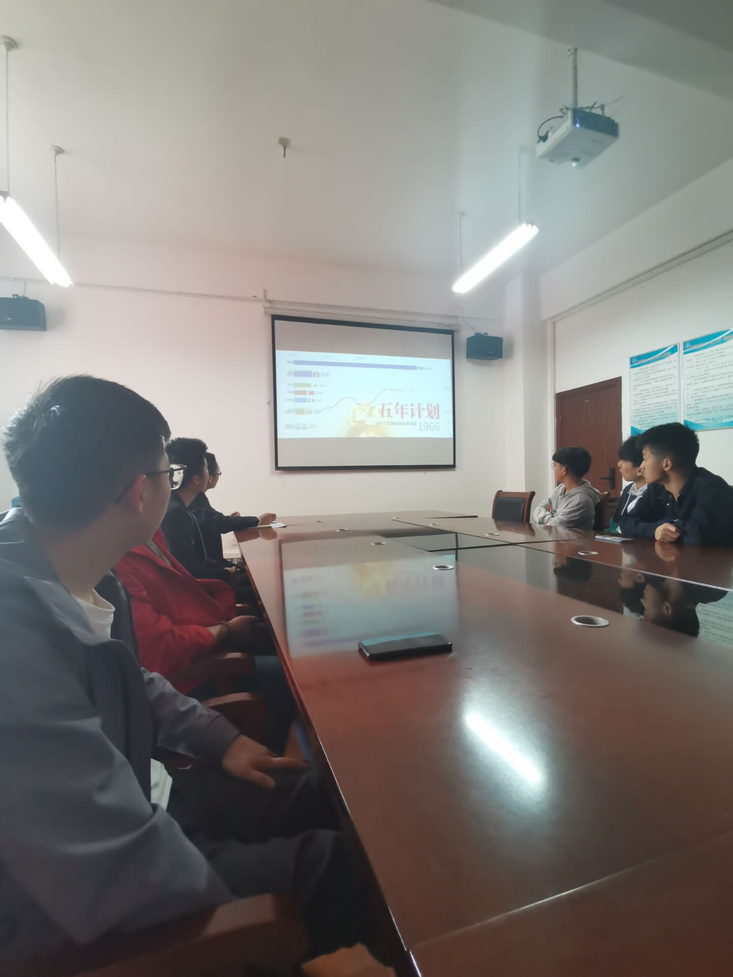紧接着,我们对“两会”精神进行了学习,学习了“十四五”规划纲要,了解“十四五”的主要目标、关键词、重要数据等,谢超老师用“增”、“稳”、“降”、“减”、“保”、 “尽”、“延”、“清”、“新”、“高”等关键词为我们解读了两会精神。