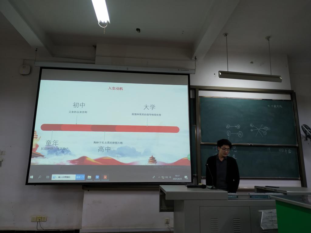 经班级团支部推选的江欣远、邓芙蓉、杨林青、曾令辉、钱思颖、蔡大海、王英杰、冯俊龙、李江洲、王子亮、杨州、佘沁雪、胡春华等13名发展对象候选人逐一展开答辩,答辩形式为PPT汇报和评委提问,同学们阐述了思想觉悟、知识学习、成长历练、为民服务、荣誉成果等各方面的内容,回答了党史等知识问题。