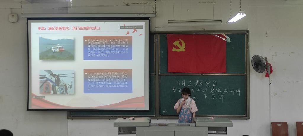 为了弘扬爱国主义精神、加快建设科技强国,5月31日在8D-201教室开展了以“上九天,下五洋”为主题的制造中国主题党日活动。本次活动由机械学生第三党支部承办。此次会议由赵叶子同学主持,学院党委副书记周玉艳、全体辅导员老师及全体学生党员(含预备)参加。