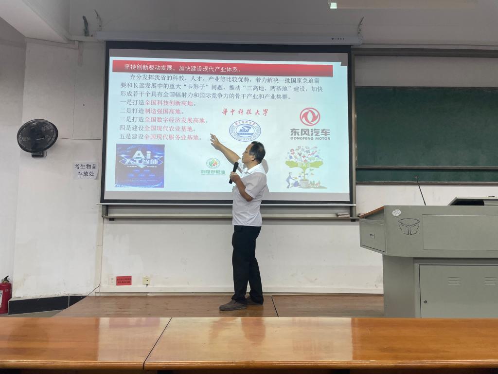 会上,院党委书记干文勋从湖北省过去五年的七大成就、五条经验以及新形势下的六新目标、九件大事等方面,联系实际进行讲解,帮助学生党员进一步理解习近平总书记重要指示和省党代会精神实质;从全面推进乡村振兴、健全区域协调发展机制以及打造国内大循环节点等方面详细介绍了如何提高构建新发展格局先行区的能力;结合省内产业实例突出了以创新驱动发展,加快建设现代产业体系的重要性。