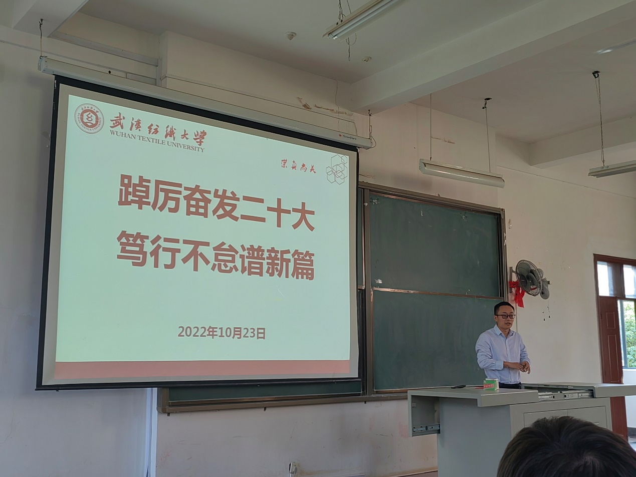 辅导员谢超老师希望大家在全面建设社会主义现代化国家的新征程上深入学习党的二十大精神,弘扬伟大建党精神,不忘初心,牢记使命,坚持党的领导,坚持科技是第一生产力、人才是第一资源,创新是第一动力,青年心向党,奋斗新征程,要坚定不移听党话、跟党走,怀抱梦想又脚踏实地,敢想敢为又善作善成,立志做有理想、敢担当、能吃苦、肯奋斗的新时代好青年,在美好纺大谱写高质量发展的新篇章中成为有理想、有本领、有担当的新一代研究生。