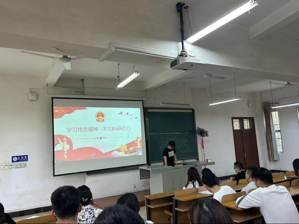会上,学生党员吴瑞志同志领学“学习钱老精神 不忘科研初心”内容。从立志报国到坚定回国,从投身航天到献身航天,钱老托起华夏儿女的飞天梦,夯实盛世安稳之基。先辈远去,精神万古。新青年应该传承钱老爱国、科学、创新、奉献的精神。