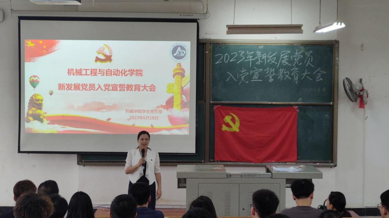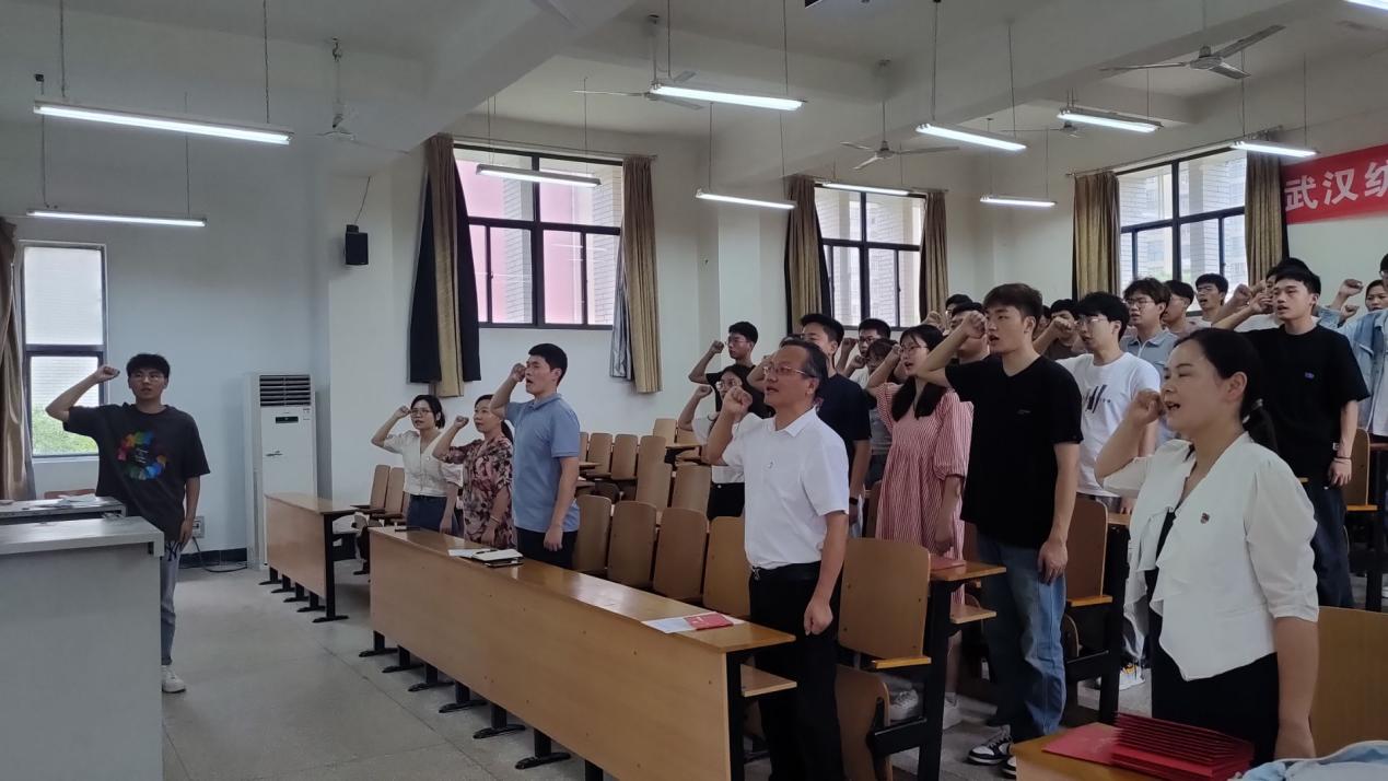 为进一步强化党员意识,坚定理想信念,充分发挥先锋模范作用,2023年6月18日下午,永利集团在8D-201教室举办新发展党员入党宣誓仪式。永利集团党委书记干文勋、党委副书记周玉艳出席此次活动,各学生党支部书记和全体新发展学生党员参加。