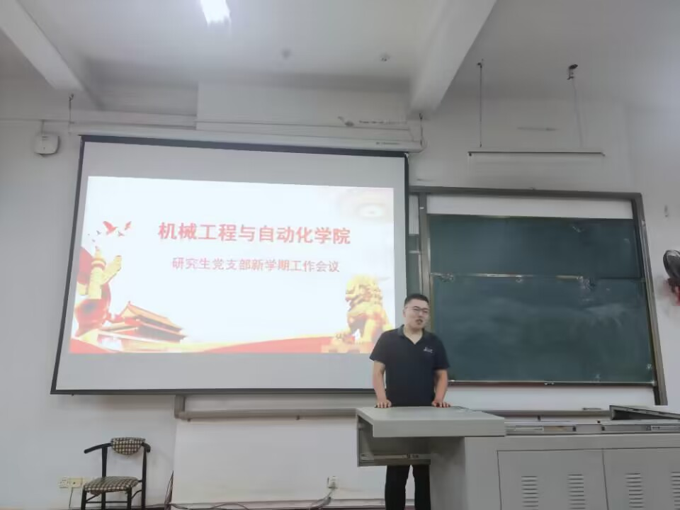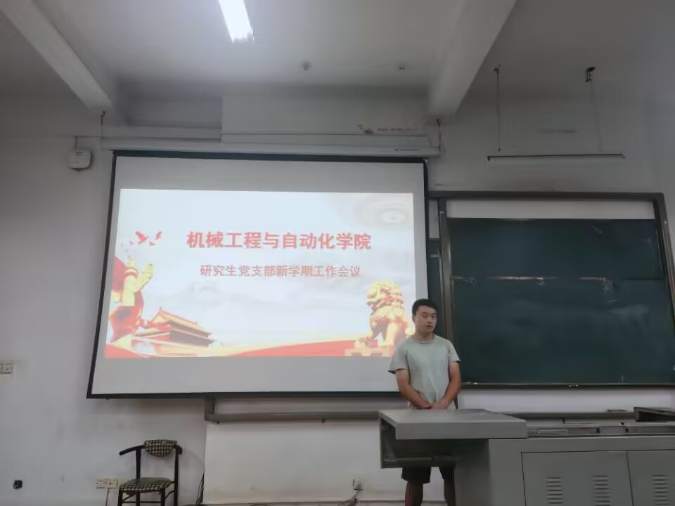 会议期间,谢超老师以习近平总书记在全国高校思想政治工作会议上的讲话精神向全体党员传递学生党支部和党员的责任和使命,高校党支部是“火车头”,是党联系广大青年学生的重要桥梁,承担着发展学生党员、开展大学生思想政治教育工作的重要职责,要重视团队建设,发挥战斗堡垒作用,把好思想政治关、建设标准关、发展质量关、先锋引领关、示范创新关,围绕研究生的发展方向做好“党建+”,发挥党团骨干在“1+N”学研平台的作用,做好党员一对一宿舍携手共成长活动。