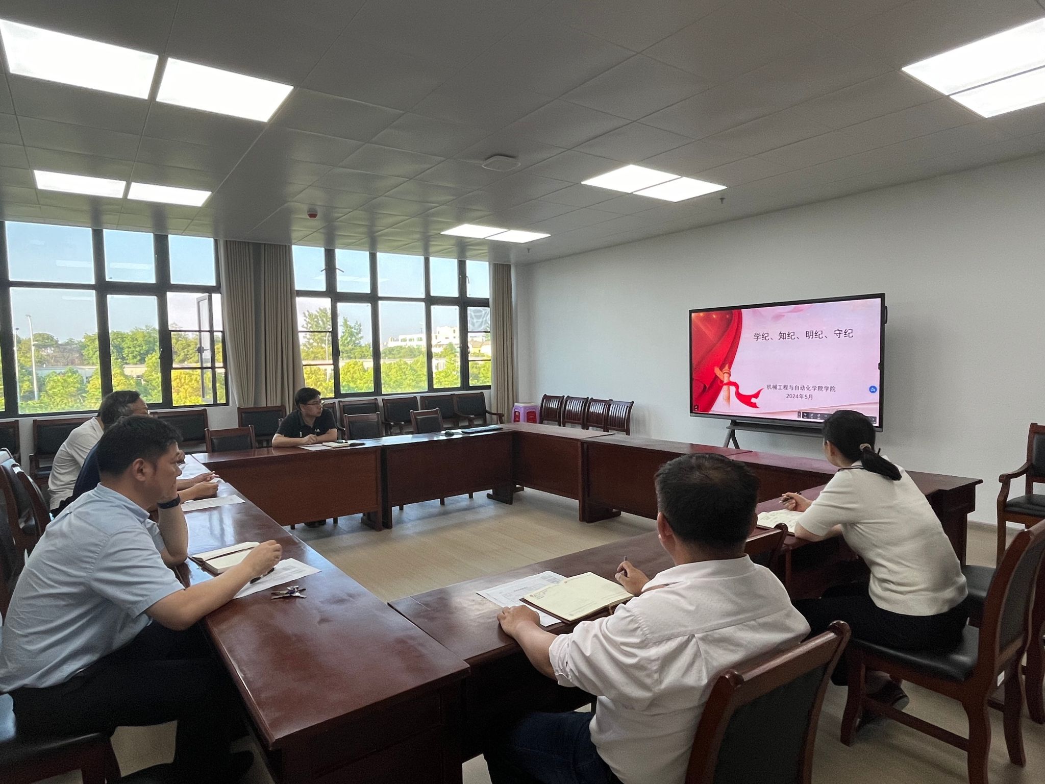 会上,干书记首先导读了《关于在全党开展党纪学习教育的通知》,并指出学院党委和师生党支部要把开展党纪学习教育作为重要政治任务,脚踏实地组织实施并督促落实。随后,干书记以《学纪、知纪、明纪、守纪》为主题开展领学,从“学纪”是基础、“知纪”是前提、“明纪”是根本、“守纪”是关键四个方面详细讲解了学习《条例》的重要性,结合具体案例强调党的纪律是管党治党的“戒尺”,也是维系党组织稳定和执政合法性的重要保障。