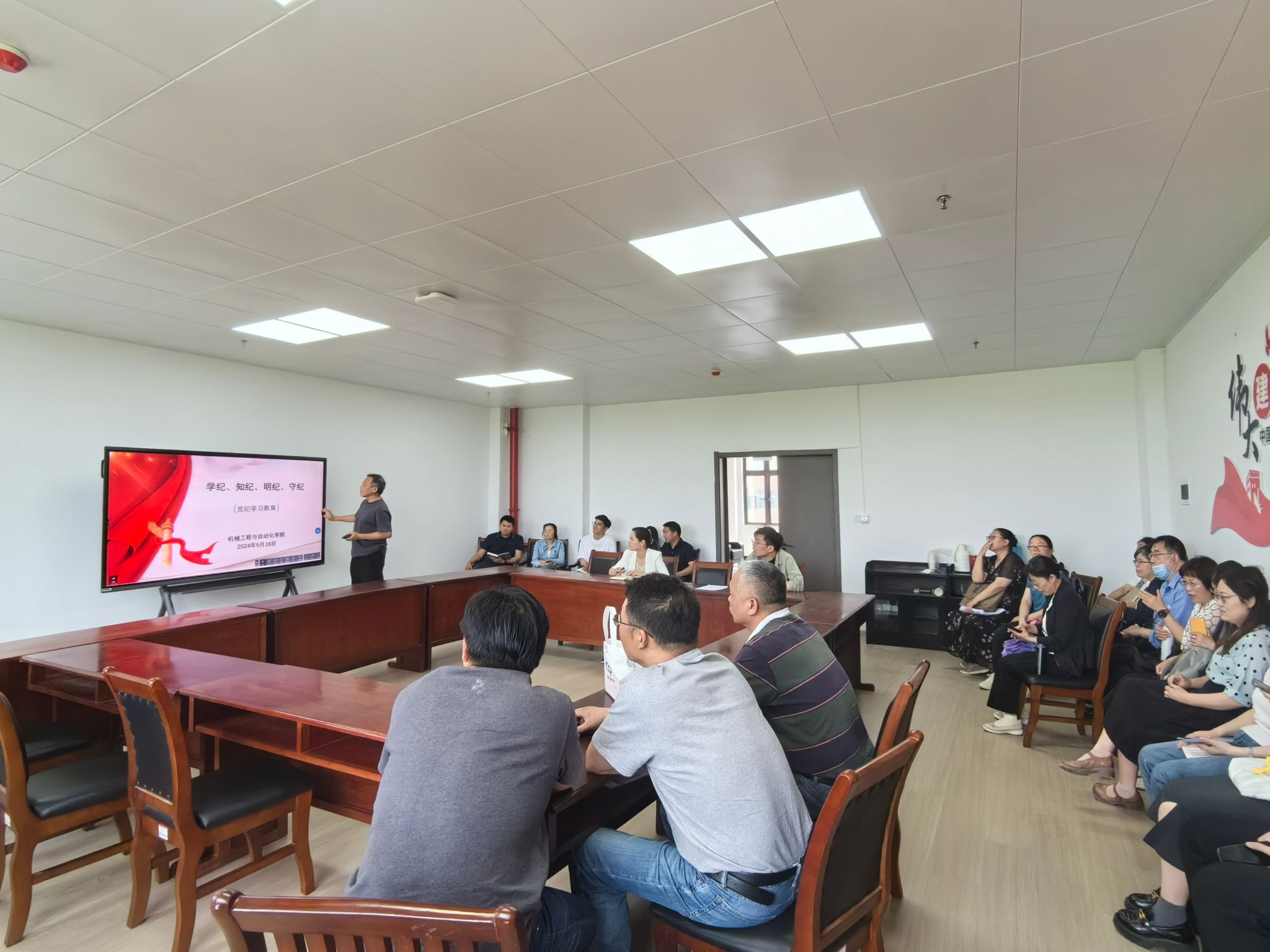 干书记以《学纪、知纪、明纪、守纪》为题,首先强调了开展党纪学习教育的重要意义,介绍了《中国共产党纪律处分条例》的主要内容和突出特点,围绕党的政治纪律、组织纪律、廉洁纪律、群众纪律、工作纪律、生活纪律“六大纪律”,带领教师党员原原本本学,联系警示案例学,联系岗位职责学。他指出高校教师党员具有双重身份,既是党员,又是教师;既要传授知识,更要为党育人;号召全体党员坚守教育初心,勇担育人使命,以严明的纪律、优良的作风、风清气正的育人环境、清朗的政治生态为学院高质量发展提供坚强的政治保障。随后,周书记传达了党员承诺践诺活动的相关要求,进一步推进教师党员深入群众,了解群众急难愁盼,为群众办实事,解难题。