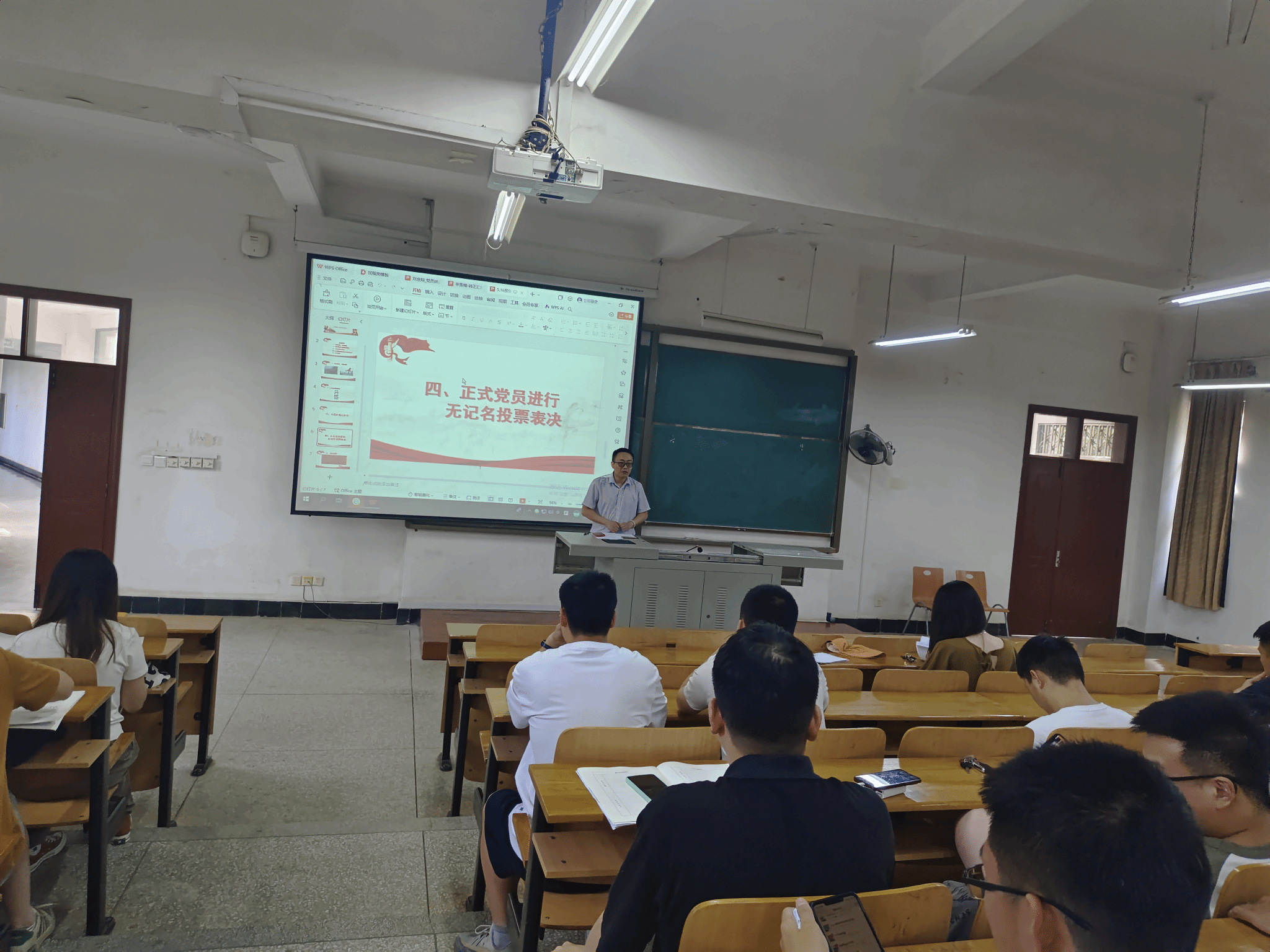 会上,6名同志依次汇报政治品德、任职经历、为民服务、学术成果、荣誉奖励、实践经历、专业资质等方面的情况,正式党员宣读了预备期意见,希望大家继续保持共产党员的先进性,用实际行动践行为共产主义奋斗终身的誓言。经支部大会无记名投票表决,一致同意接收艾胜、王志豪、袁梦、张国盼、刘金灿和李雯楠6名同志为中共正式党员。