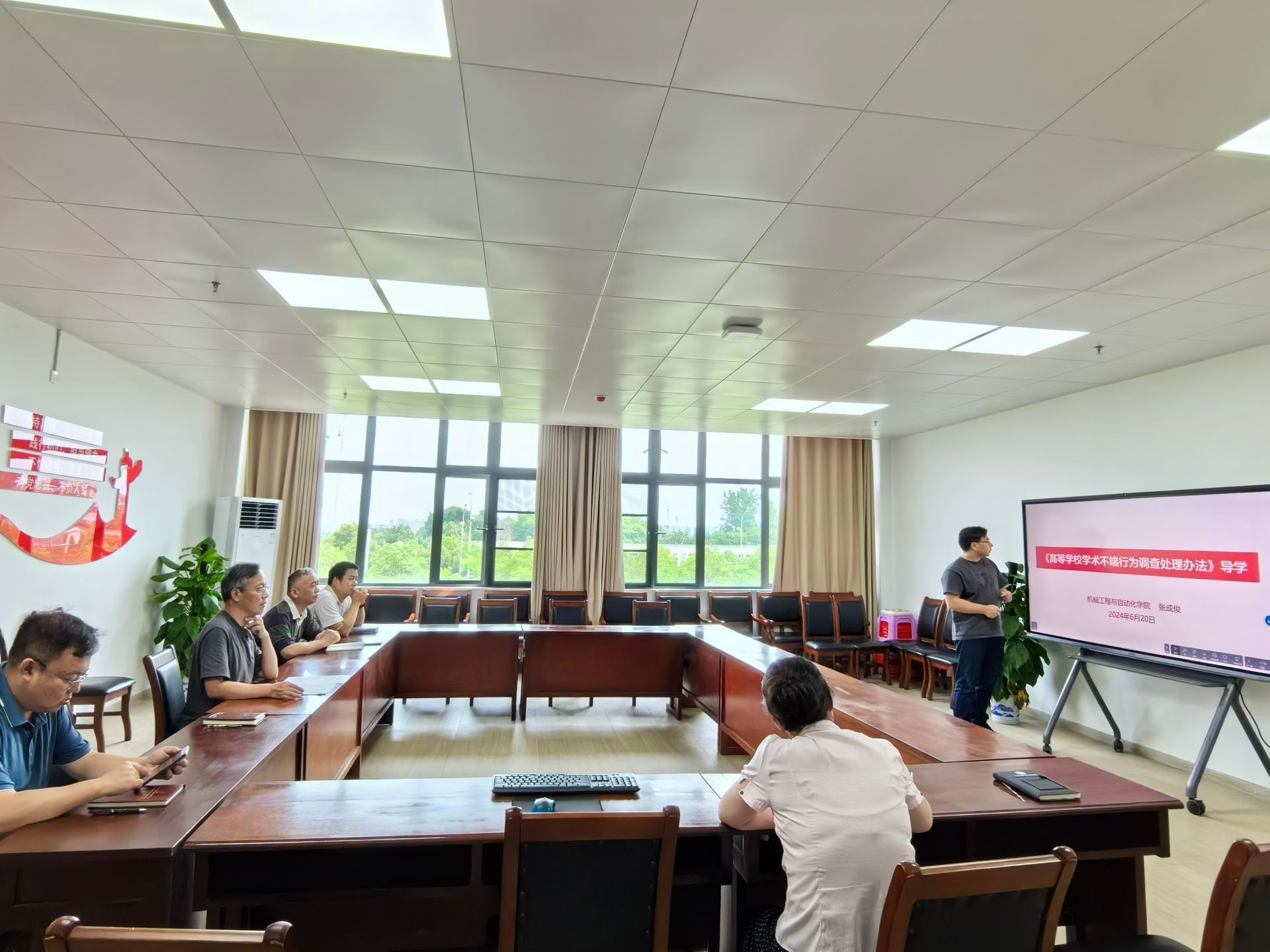 6月21日上午,永利集团在10教311会议室召开6月党委中心组理论学习暨党纪学习教育专题交流,本次学习聚焦习近平总书记在《求是》杂志发表的文章《全面深化改革开放,为中国式现代化持续注入强劲动力》、人民日报文章《把纪律规矩转化为政治自觉、思想自觉、行动自觉》、《务求党纪学习教育之效》和《高等学校学术不端行为调查处理办法》等学习资料,会议由学院党委书记干文勋主持,全体中心组成员参会。