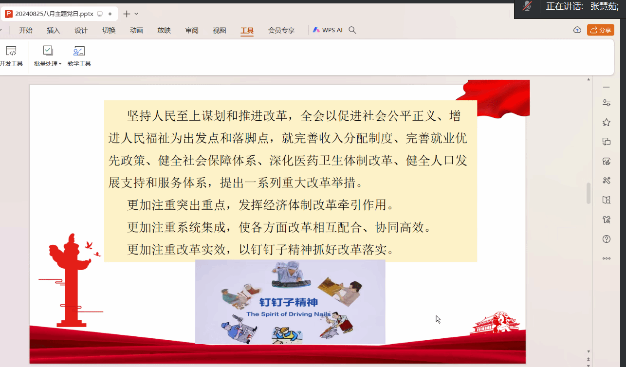 为深入学习党的二十届三中全会精神,推进党纪学习教育走深走实。8月25日上午9:30,永利集团学生党支部集中开展8月主题党日活动。本次活动由永利集团研究生党支部承办,永利集团党委副书记周玉艳、各学生党支部书记和全体学生党员参会。